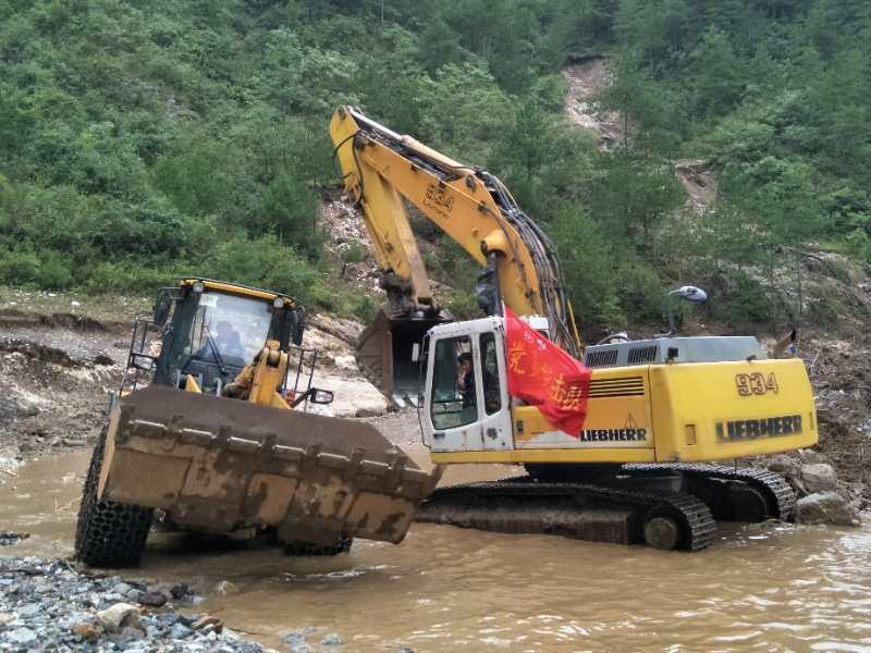 8月10日,沒有顧得上休整,王振克再次奔赴洛南麻坪援建搶修水毀道路。為了保證此次任務(wù)的安全順利完成,露天礦養(yǎng)路隊成立黨員突擊隊,由王振克擔(dān)任隊長,負(fù)責(zé)麻坪援建搶險。由于所修道路大多在兩山中間的峽谷地段,環(huán)境惡劣,期間經(jīng)常出現(xiàn)汛情預(yù)警,還時常下大雨。有的路面懸空,有的路段有塌方和泥石流,河道內(nèi)有暗流和深坑,還有很多水壩和沖溝,王振克在每天設(shè)備作業(yè)前或每修一段路前,都要提前判斷人員設(shè)備在大雨、塌方、泥石流等危險狀況下的撤離路線和安全地點。有的路段需要墊幾米深的砂石,推近緩慢。有時一晚上大雨沖毀了前一天修的路段,第二天就及時補修。為了防止河水對所修道路的沖刷,挖河改道1000多米。由于遠(yuǎn)離礦區(qū),他們每天早晨7點出發(fā),傍晚才能結(jié)束一天的工作返回休息,克服了吃飯不便,通訊中斷等困難,爭分奪秒,加班加點,沒有休息過一天,直到8月24日順利完成任務(wù)。