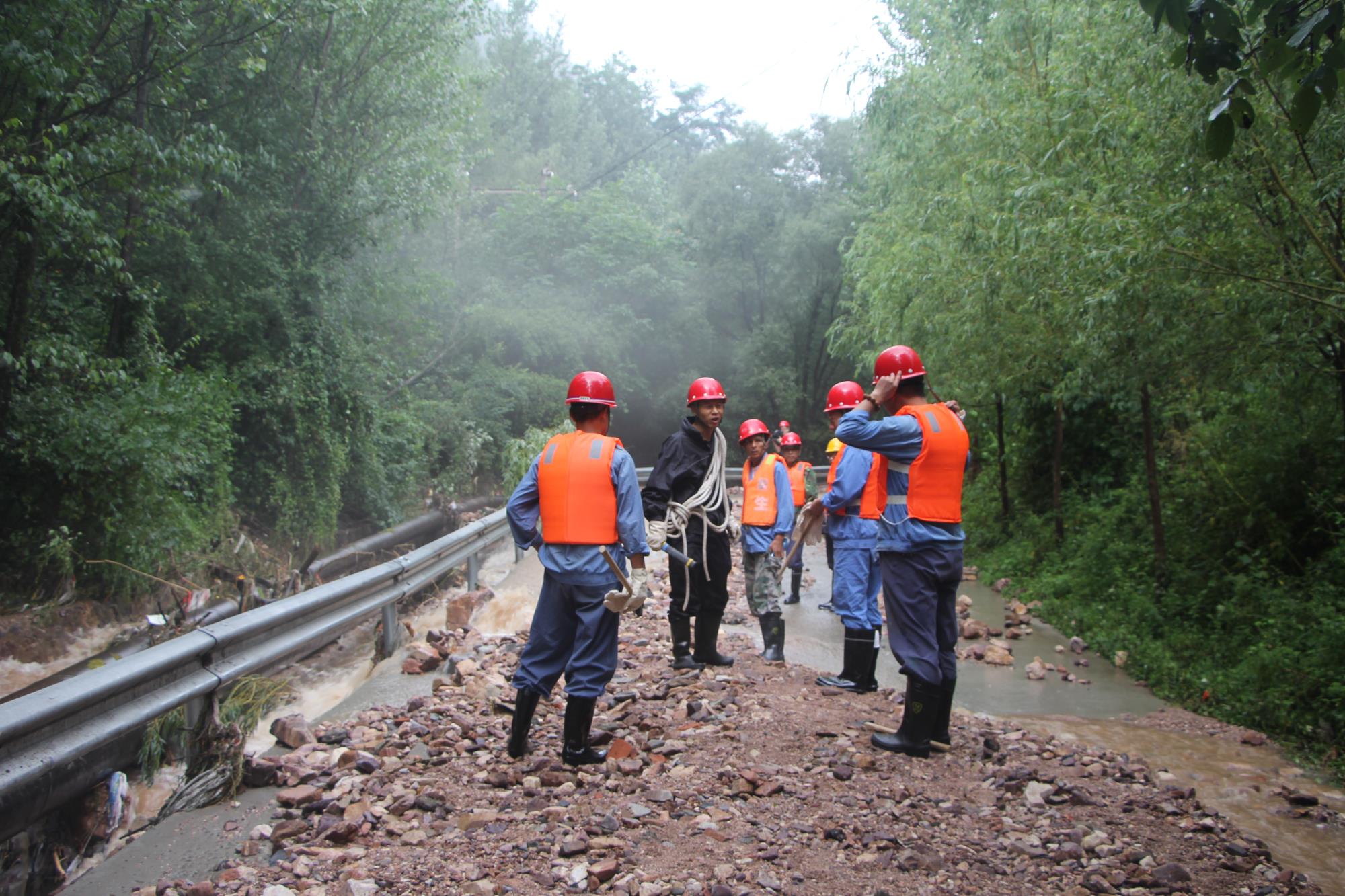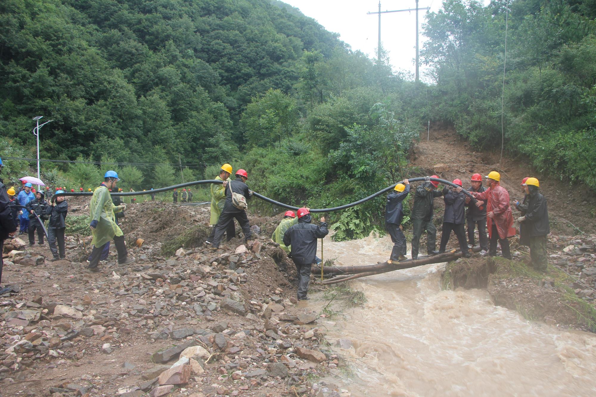 8月6日凌晨4時(shí)許,他帶領(lǐng)人員巡查石可照明和水源線路,查明水源線路前半段因泥石流等原因造成多處樹木傾倒壓線,石可高壓線路多個(gè)電桿傾斜。天亮后,他帶領(lǐng)巡線小組再次巡查線路。由于路面水毀嚴(yán)重,徒步巡查水源后半段線路時(shí),路面塌方且水流又急又大,有幾處路段需爬山繞行,當(dāng)查明水源線33、34號(hào)電桿傾倒,他立即制定搶修方案,組織人員做好搶修準(zhǔn)備。7日凌晨,分公司開始集合搶修人員進(jìn)行線路搶修,他指揮搶修器材裝車,進(jìn)行電纜鋪設(shè)、對(duì)接等,在大雨中苦干近20個(gè)小時(shí)。在即將完成搶修任務(wù)的時(shí)候,由于再次強(qiáng)降雨,造成32號(hào)桿意外折斷,他又趕緊制定二次搶修方案,連夜勘查31號(hào)和30號(hào)桿狀況。8日上午6時(shí),他再次組織人員搶修水源線路,完成了31號(hào)桿之前的線路檢查測(cè)試,排除接地隱患,并對(duì)水庫(kù)配電室進(jìn)行排查,提前做好送電準(zhǔn)備工作。經(jīng)過3天水源線路搶修,共鋪設(shè)1000余米、重約10噸的電纜,制作終端頭3個(gè),對(duì)接頭2個(gè),8日晚19時(shí)47分,圓滿完成水源線路搶修任務(wù)。