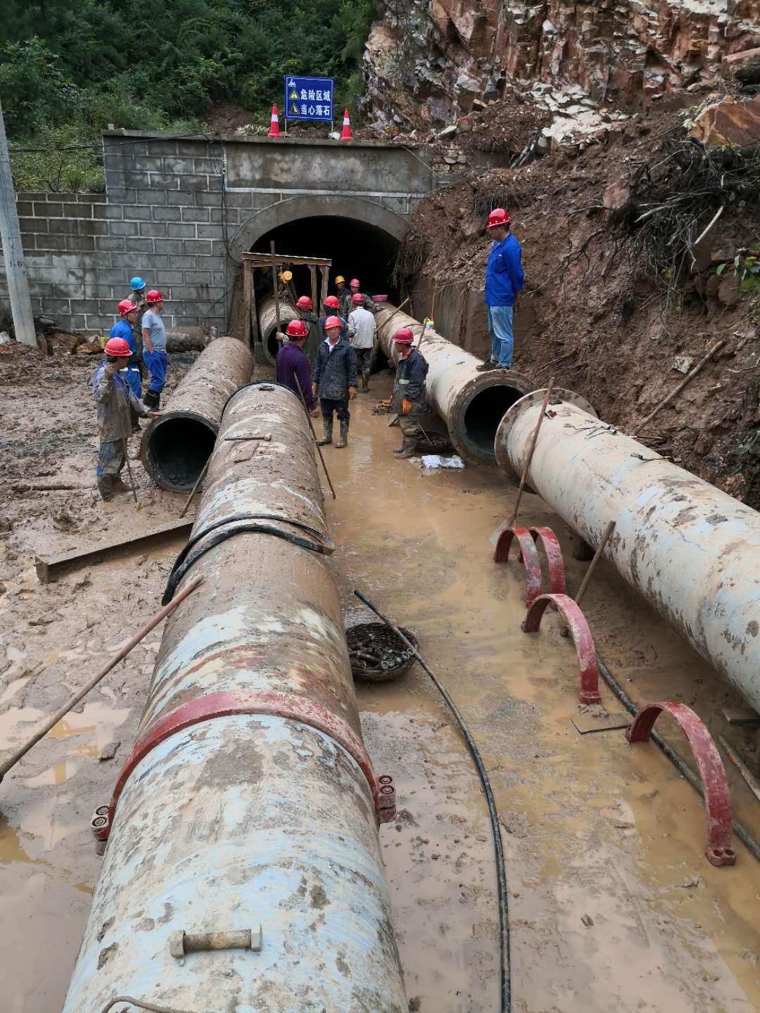 8月6日凌晨1時(shí)左右,在巡查至距王家坪1號(hào)尾礦輸送隧洞出口約百米處時(shí),出口遭遇泥石流堵塞,洪水倒灌,萇勇迅速帶領(lǐng)兩名隊(duì)員原路撤離,至隧洞進(jìn)口處又逢泥石流堵塞進(jìn)口,經(jīng)觀察安全后帶領(lǐng)兩名隊(duì)員撤至洞外安全地帶,并將現(xiàn)場情況逐級(jí)匯報(bào)車間、廠部。面對(duì)磨溝道路損壞和咆哮的洪水,他們沒有畏懼,而是擔(dān)心著各泵站的受損情況。憑借著多年來的工作經(jīng)驗(yàn),他們?nèi)送讲节s往3、4泵站查看災(zāi)情、解救受困的崗位人員。在成功解救4泵站受困崗位人員后,崗位人員激動(dòng)地握著他們的手說:“泵站內(nèi)被沙石掩埋了,我們只能躲在廠房頂部避險(xiǎn),看見遠(yuǎn)處照來的手電光,知道是車間派人來解救我們的,你們來得太及時(shí)了!”至凌晨4時(shí)30分,他們成功的將兩個(gè)泵站崗位人員共計(jì)9人安全撤離至車間辦公室。