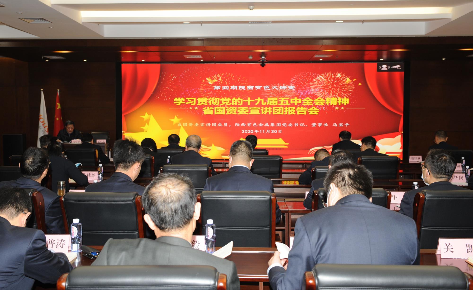 11月30日,學(xué)習(xí)貫徹黨的十九屆五中全會(huì)精神省國(guó)資委宣講團(tuán)報(bào)告會(huì)在陜西有色金屬集團(tuán)舉行。省國(guó)資委宣講團(tuán)成員、陜西有色金屬集團(tuán)黨委書(shū)記、董事長(zhǎng)馬寶平作宣講報(bào)告,黨委副書(shū)記、董事王小慶主持。