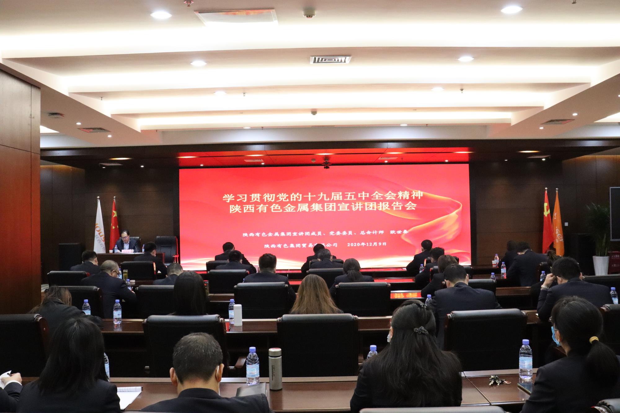 12月9日,學(xué)習(xí)宣傳貫徹黨的十九屆五中全會(huì)精神陜西有色金屬集團(tuán)宣講團(tuán)報(bào)告會(huì)在貿(mào)易公司舉行。陜西有色金屬集團(tuán)宣講團(tuán)成員、黨委委員、總會(huì)計(jì)師歐世秦作宣講報(bào)告,貿(mào)易公司黨委書記、執(zhí)行董事葛琦主持。