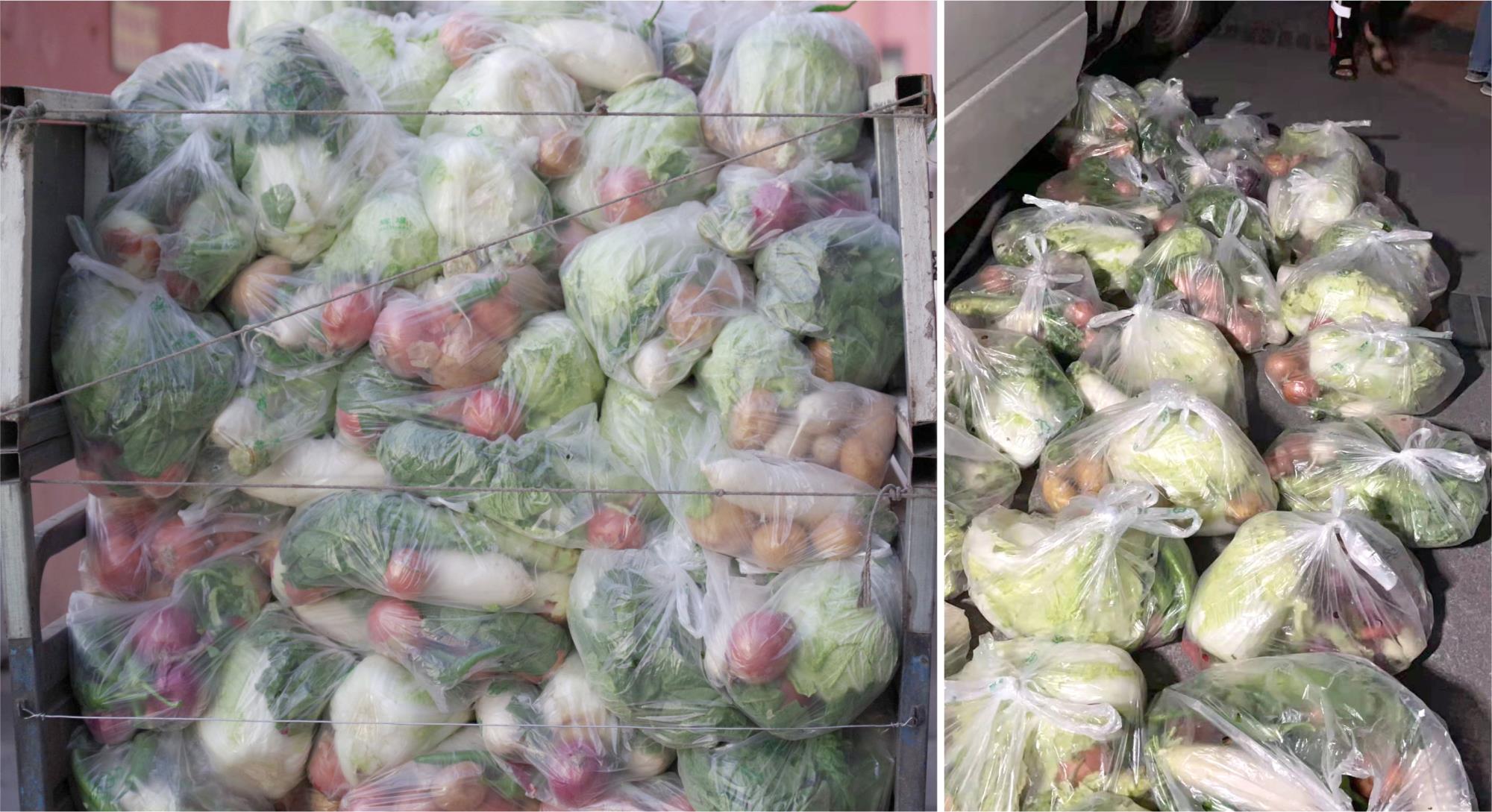 與此同時(shí),物業(yè)公司、后勤服務(wù)中心積極與測繪路社區(qū)加強(qiáng)聯(lián)系,關(guān)注后續(xù)蔬菜投放進(jìn)程。在了解到社區(qū)物資投放量大、人員緊缺的實(shí)際困難后,幾名志愿者主動請纓,志愿者李強(qiáng)說:“早點(diǎn)拉回來就能早點(diǎn)發(fā),大家都等著呢!”他們驅(qū)車趕往社區(qū)指定的蔬菜冷鏈貨車集結(jié)點(diǎn)明勝街對接、清點(diǎn)、裝車,到下午六時(shí)許,將第二批430多份“愛心蔬菜包”拉至院子。