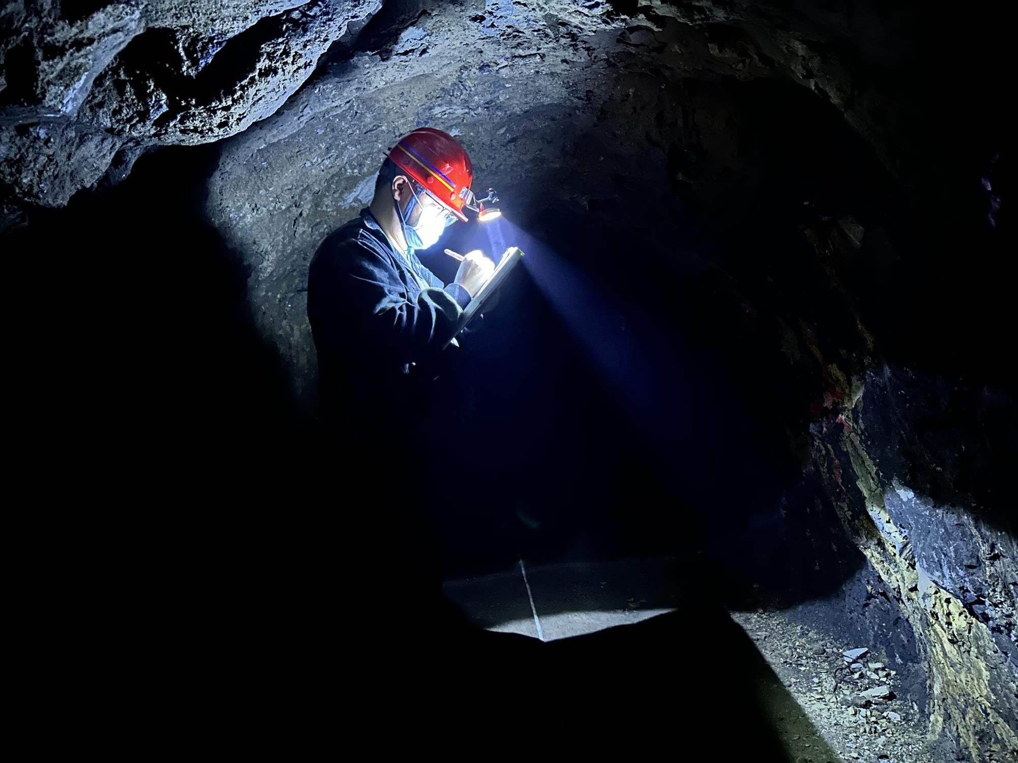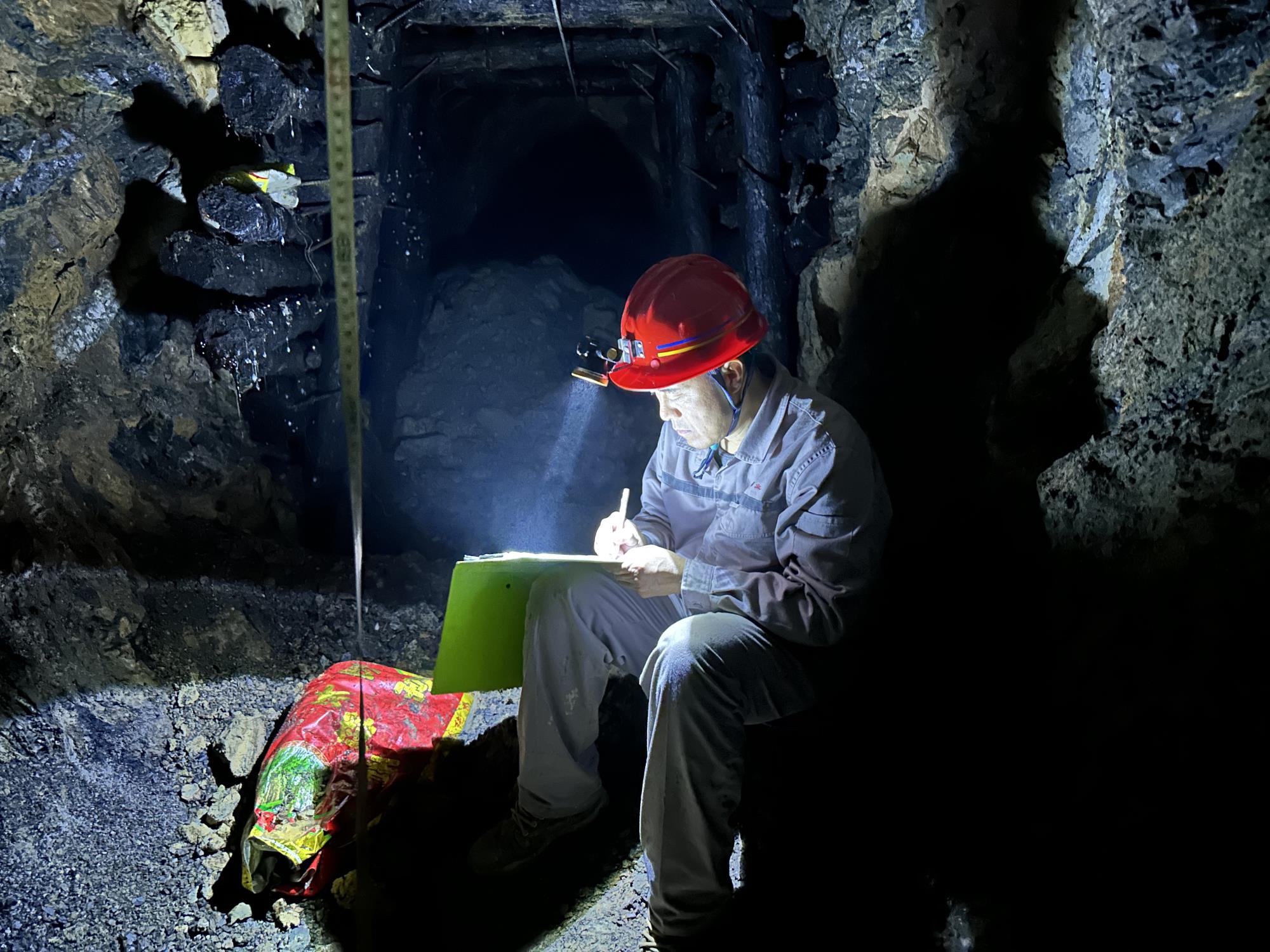 當(dāng)寨子溝礦區(qū)樣品送檢后,坑道成了我的另一個課堂。師父教我測量各類產(chǎn)狀,教我展點和產(chǎn)狀,教我如何勾畫地質(zhì)界線……水珠從坑道頂板滴落,在礦燈光束里拉出銀線。師父的筆尖在巖壁上游走如活物,筆尖順層理滑動,在圖紙上旋出流暢的曲線。昏暗光線下,那墨線竟有了生命般微微搏動——巖石的密碼被解開一道縫隙,礦脈的暖流正滲出石壁。地質(zhì)錘叩擊巖壁的顫音未散,巖石紋層間簌簌剝落的碎屑里,恍有古河道裹挾風(fēng)沙的呼嘯掠過指腹。