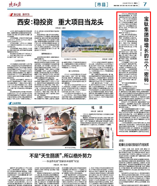 “新”字是寶鈦集團(tuán)穩(wěn)增長(zhǎng)的第二個(gè)“密碼”。