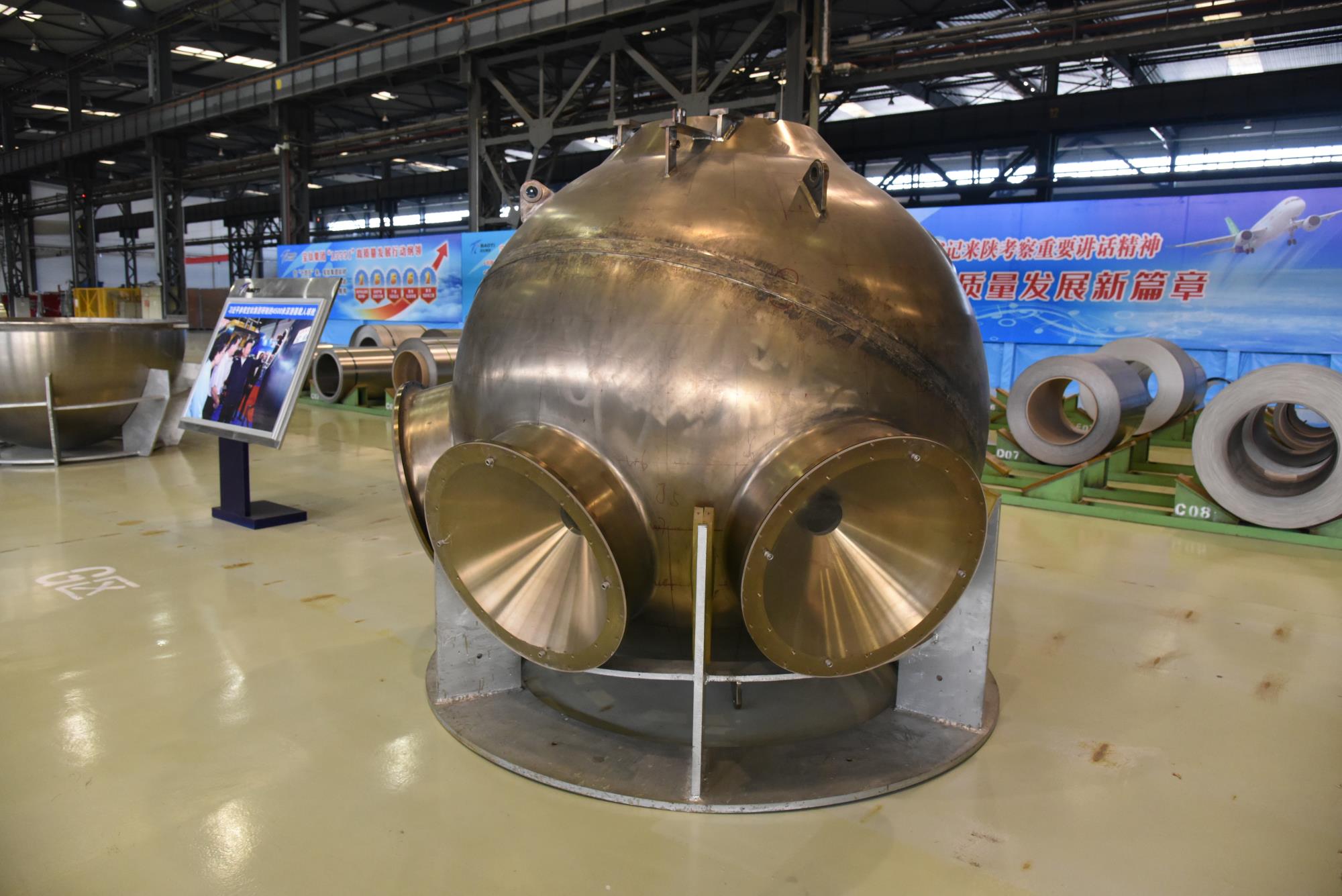 陜西有色寶鈦集團(tuán)研制的萬(wàn)米級(jí)載人潛水器鈦合金載人球艙。