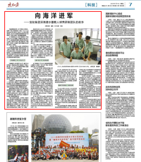 “能夠搭載科研人員下潛到大洋深處,祖國了不起,陜西科技了不起。”7月7日,在陜西省慶祝中國共產(chǎn)黨成立100周年主題展現(xiàn)場,部分觀眾圍著寶鈦集團研制的“深海勇士”號鈦合金載人球殼模型感慨道。
