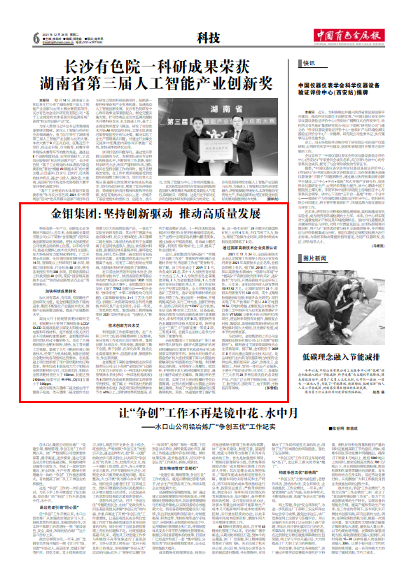 科技是第一生產(chǎn)力,創(chuàng)新是企業(yè)發(fā)展的不竭動力。近年來,金堆城鉬業(yè)集團(tuán)有限公司(以下簡稱“金鉬集團(tuán)”)堅(jiān)持實(shí)施創(chuàng)新驅(qū)動發(fā)展戰(zhàn)略,把技術(shù)創(chuàng)新擺在公司發(fā)展全局的核心位置,以市場為導(dǎo)向,推進(jìn)關(guān)鍵核心技術(shù)攻關(guān)和自主創(chuàng)新,加大科技研發(fā)力度和成果轉(zhuǎn)化,廣泛開展全員創(chuàng)新。先后承擔(dān)國家級科研項(xiàng)目14項(xiàng),省部級以上科研項(xiàng)目50余項(xiàng),制修訂國家標(biāo)準(zhǔn)、行業(yè)標(biāo)準(zhǔn)80余項(xiàng),擁有各類授權(quán)專利300余項(xiàng),獲得省部級以上科技獎(jiǎng)勵(lì)60余項(xiàng),榮獲“國家級高新技術(shù)企業(yè)”“陜西省創(chuàng)新型試點(diǎn)企業(yè)”等榮譽(yù)稱號。