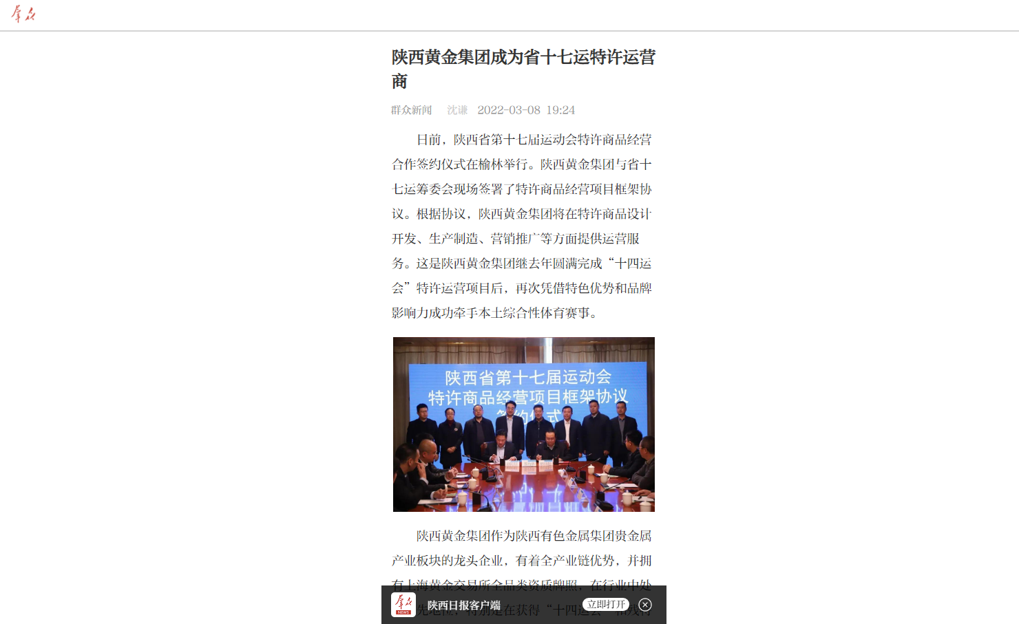 省十七運(yùn)會是繼“十四運(yùn)會”之后,在陜西舉辦的規(guī)模大、級別高、影響廣泛的體育賽事。據(jù)介紹:陜西黃金集團(tuán)將發(fā)揮特色優(yōu)勢,全力服務(wù)榆林市辦好此次體育盛會,讓“精彩省運(yùn),美好生活”的主題與“源于秦,盛于金”的理念相互融合,助力省十七運(yùn)在駝城精彩綻放。同時(shí),雙方將保持良好合作關(guān)系,以省十七運(yùn)特許運(yùn)營為契機(jī),努力在更大范圍、更高平臺、更廣領(lǐng)域內(nèi)深化合作,共同打造企地共贏的新模式。陜西黃金集團(tuán)將繼續(xù)擴(kuò)大在文旅體等領(lǐng)域的“朋友圈”,通過探索一批互惠共贏合作模式、盈利模式和商業(yè)模式,創(chuàng)新一批彰顯“秦金”品牌魅力的跨界明星產(chǎn)品,用活優(yōu)質(zhì)資源,增加產(chǎn)品溢價(jià),持續(xù)提升企業(yè)的知名度和“秦金”品牌影響力,努力為陜西有色金屬集團(tuán)高質(zhì)量發(fā)展注入新動能。