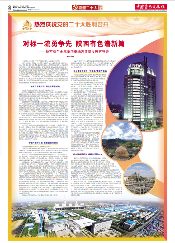 中國(guó)有色金屬報(bào):對(duì)標(biāo)一流勇?tīng)?zhēng)先 陜西有色譜新篇——陜西有色金屬集團(tuán)奏響高質(zhì)量發(fā)展更強(qiáng)音