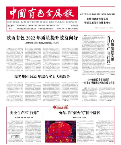 1月18日,從陜西有色金屬集團(tuán)召開的三屆一次職代會暨2023年工作會議上獲悉,2022年,該集團(tuán)全力以赴穩(wěn)增長、調(diào)結(jié)構(gòu)、防風(fēng)險(xiǎn)、提質(zhì)效,整體呈現(xiàn)出“產(chǎn)量增長、質(zhì)量提升、效益向好”的特點(diǎn)。2022年,該集團(tuán)實(shí)現(xiàn)營業(yè)收入1760.17億元,同比增長8.77%;利潤總額46.02億元,同比增長82.94%;上繳稅費(fèi)69.55億元,同比增長78.75%;主要經(jīng)濟(jì)指標(biāo)均創(chuàng)近年來最高水平,榮獲陜西省國資委“提質(zhì)增效獎(jiǎng)”和“技術(shù)創(chuàng)新獎(jiǎng)”。