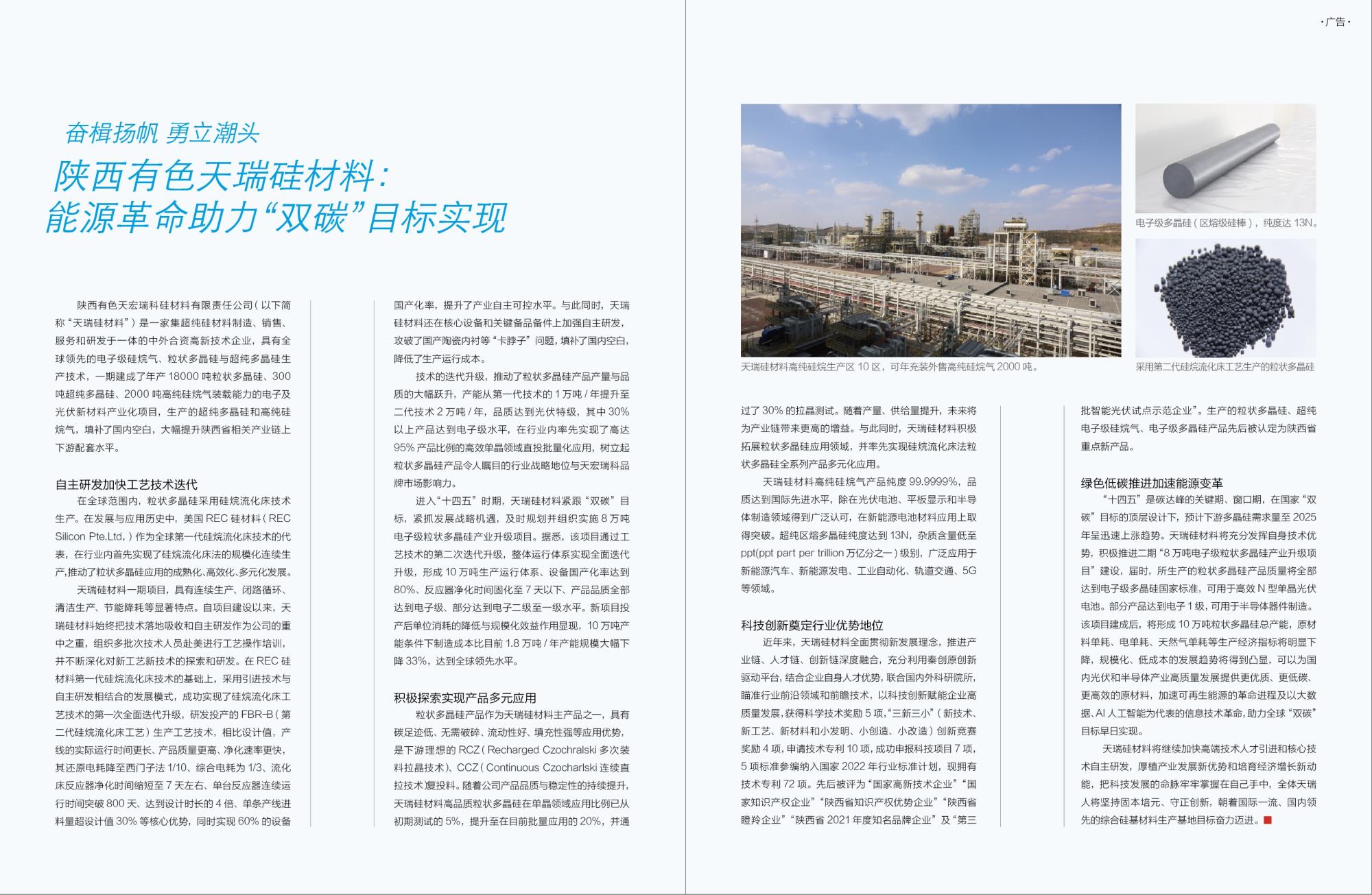 人民數(shù)字聯(lián)播網(wǎng)、中國經(jīng)濟(jì)周刊:陜西有色天瑞硅材料:能源革命助力“雙碳”目標(biāo)實(shí)現(xiàn)