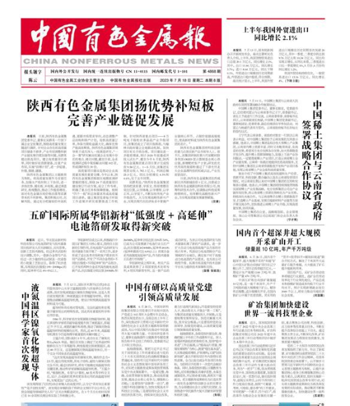 【學思想 強黨性 重實踐 建新功】陜西有色金屬集團:揚優(yōu)勢補短板 完善產(chǎn)業(yè)鏈促發(fā)展|陜西省_新浪財經(jīng)_新浪網(wǎng) (sina.com.cn, http://sn.people.com.cn/n2/2023/0707/c186331-40485571.html ;https://paper.cnmn.com.cn/Content.aspx?id=180448&q=4868&v=1 )