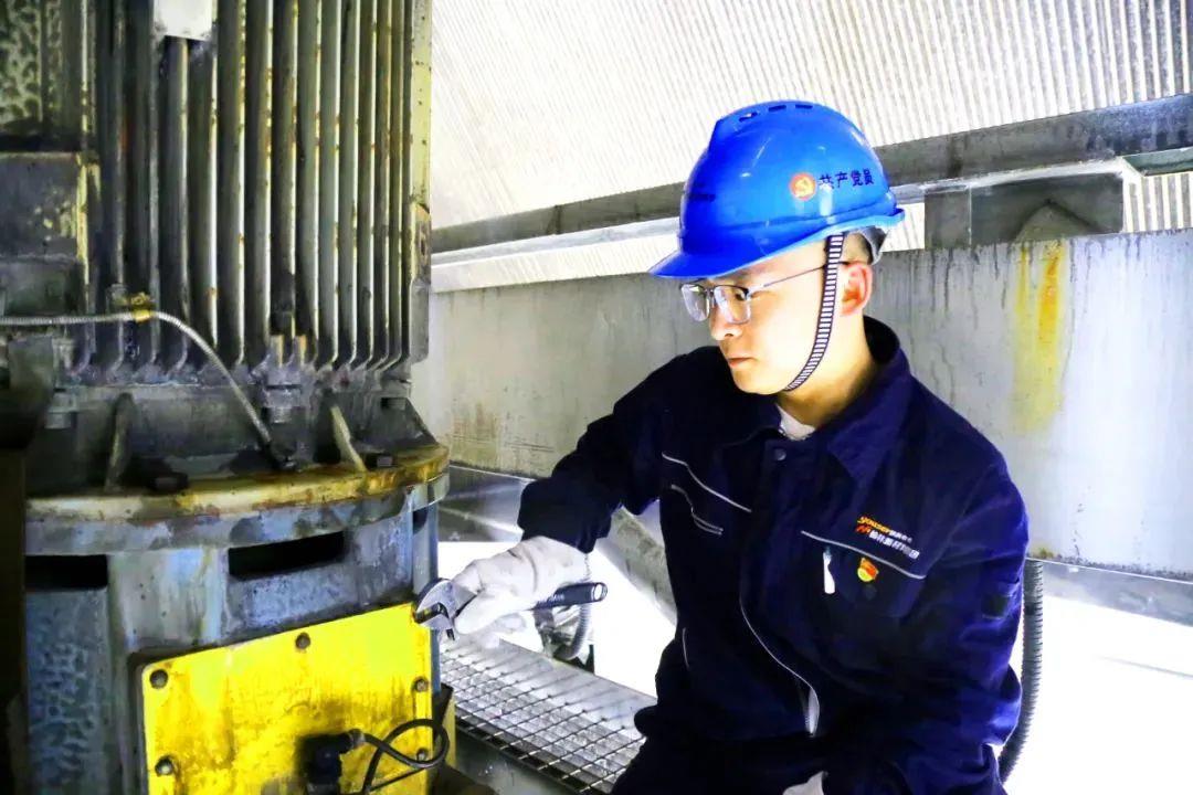在40多攝氏度的車間里,他要和同事們進行焙燒爐的移爐作業(yè)、設(shè)備巡檢、工藝控制等工作。