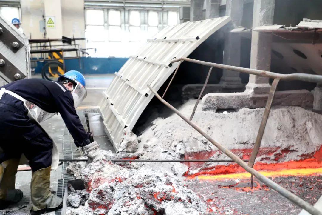 回到更衣室脫下工裝,王彥龍就像被從水里撈出來了一樣,汗順著手指往外流,一口氣喝了半瓶水。王彥龍說:“車間這么多工序,撈塊、扒沉淀是最危險的,也是最難熬的。液體電解質(zhì)有900多度,稍有不慎就會造成極其嚴(yán)重的后果,但是再辛苦、再危險的崗位也要有人去做,只要能保質(zhì)保量完成工作,累點也沒啥?!?