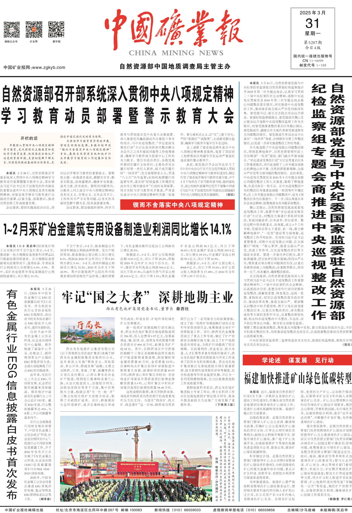 近期,《中國礦業(yè)報》開設(shè)了“廳局長話找礦”欄目。該欄目邀請各省(區(qū)、市)自然資源主管部門、地勘單位負(fù)責(zé)人撰寫署名文章,深入交流央地企合作新機制下“十四五”找礦成績和經(jīng)驗,并謀劃展望“十五五”找礦工作。2025年3月31日,《中國礦業(yè)報》頭版刊出了該欄目的第21篇文章,即地礦集團、黃金集團黨委書記、董事長秦西社的署名文章。全文如下: