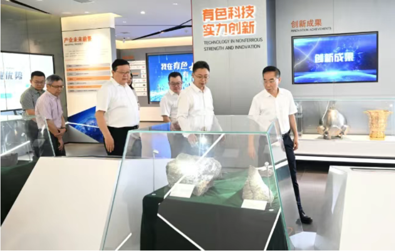 會(huì)談前,徐衛(wèi)林一行在吳群英等公司領(lǐng)導(dǎo)的陪同下參觀了陜西有色金屬集團(tuán)展廳。