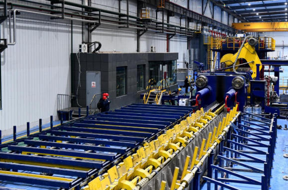 目前,1850熱軋機組、帶材連續(xù)式退火爐、6300T臥式擠壓機、1200kg真空自耗凝殼爐等一大批先進新設備已相繼投入使用;眉縣產業(yè)園金屬復合材生產線、高品質鈦鐵生產線、精密機械加工生產線等也陸續(xù)投產。這些高質量項目的達產達效,不僅大幅提升了寶鈦集團新材料的供給能力,更為企業(yè)逐步實現(xiàn)“供給高端化、結構合理化、發(fā)展綠色化、轉型數(shù)字化、體系安全化”提供了有力支撐。