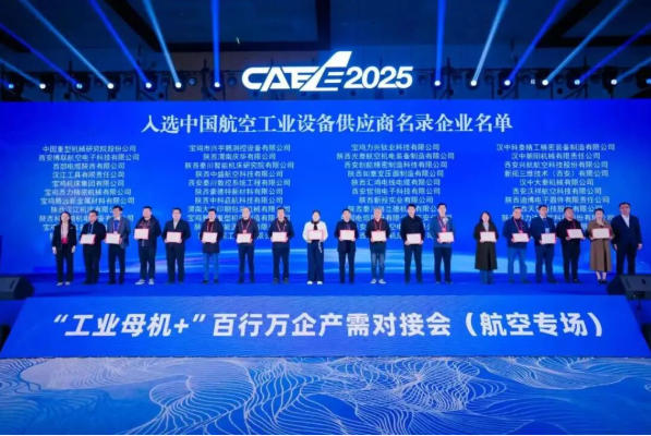 近日,寶鈦集團裝備科技公司(以下簡稱“裝備科技公司”)憑借雄厚的綜合實力,在第三屆中國航空數(shù)智能力建設(shè)及工藝設(shè)備博覽會的“工業(yè)母機+”百航萬企產(chǎn)需對接會(航空專場)上,榮獲中國航空工業(yè)設(shè)備供應(yīng)商管理委員會頒發(fā)的供應(yīng)商入庫證書,成功躋身中國航空工業(yè)設(shè)備供應(yīng)商名錄。