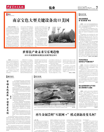 近日,由南京寶色股份公司制造的63臺(tái)套大型反應(yīng)器、換熱器、塔器、儲(chǔ)罐及管道等設(shè)備陸續(xù)發(fā)往美國,這是南京寶色股份公司首次承接的國外大型PTA項(xiàng)目,標(biāo)志著南京寶色股份公司的制造能力得到進(jìn)一步提升。