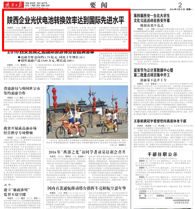 8月25日,記者在省國資委獲悉,陜西有色光電科技有限公司不斷吸收先進(jìn)技術(shù),提升自主研發(fā)能力,依靠科技創(chuàng)新促進(jìn)產(chǎn)品升級。經(jīng)過前期試車試產(chǎn),日前該公司主導(dǎo)產(chǎn)品光伏電池的轉(zhuǎn)換效率穩(wěn)定在國家要求之上,達(dá)到國際先進(jìn)水平。