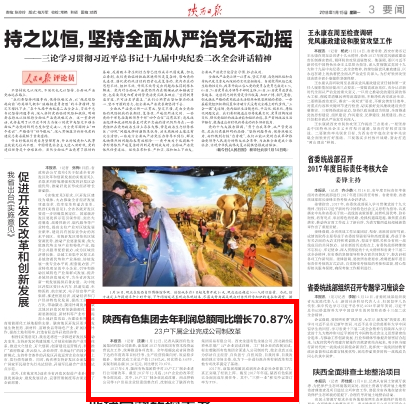 1月12日,記者從陜西有色金屬集團(tuán)有限公司獲悉,該集團(tuán)2017年深化國有資本投資運(yùn)營試點(diǎn)工作,統(tǒng)籌推進(jìn)各項改革。全年超額完成省國資委下達(dá)的年度改革目標(biāo)任務(wù),生產(chǎn)經(jīng)營持續(xù)向好,效益穩(wěn)步提升。集團(tuán)完成工業(yè)總產(chǎn)值1256億元,同比增長3.69%,實(shí)現(xiàn)利潤總額10.26億元,同比增長70.87%。