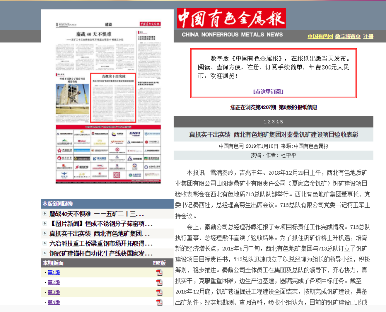 中國(guó)有色金屬報(bào):真抓實(shí)干出實(shí)績(jī) 西北有色地礦集團(tuán)對(duì)秦鼎釩礦建設(shè)項(xiàng)目驗(yàn)收表彰