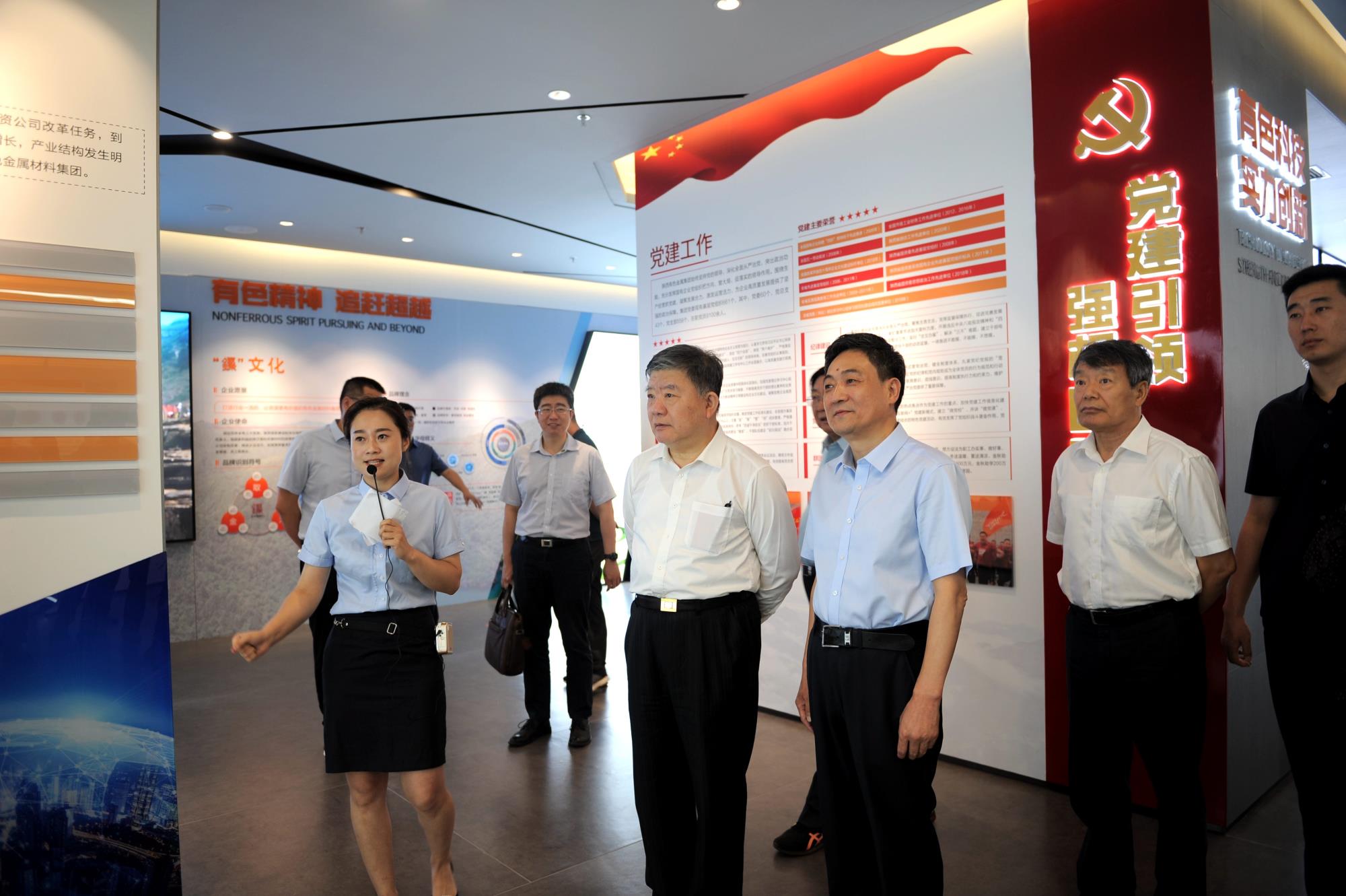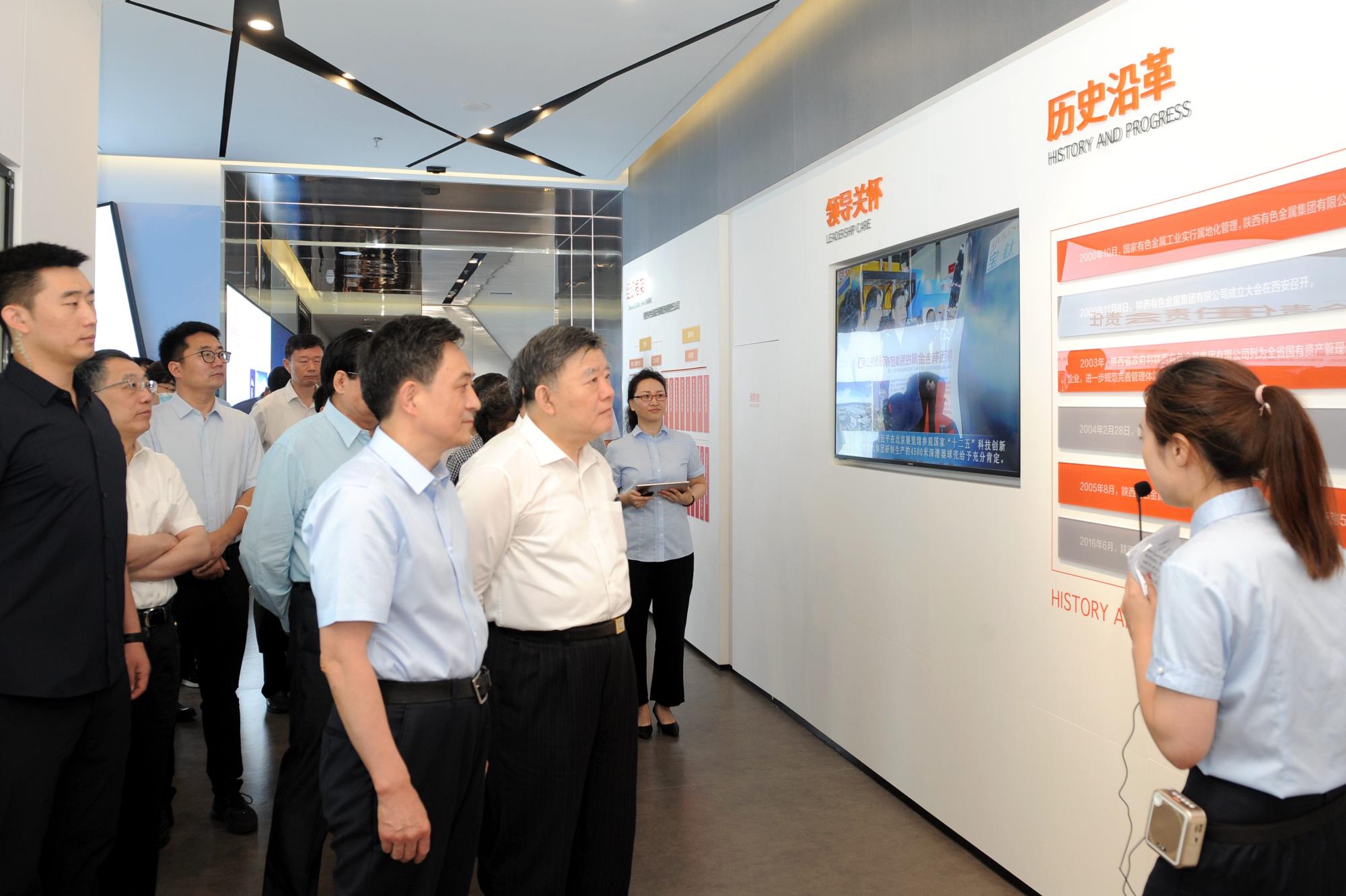 陳竺一行首先來(lái)到陜西有色金屬集團(tuán)展廳,觀看了企業(yè)宣傳片,聽(tīng)取了集團(tuán)公司黨委副書(shū)記、總經(jīng)理鄒武裝有關(guān)集團(tuán)公司歷史沿革、組織架構(gòu)、產(chǎn)業(yè)板塊、綜合實(shí)力、科技創(chuàng)新、發(fā)展愿景、社會(huì)責(zé)任等情況介紹,并饒有興致地查看了萬(wàn)米級(jí)深潛器鈦合金載人球艙、核反應(yīng)堆燃料包殼等創(chuàng)新產(chǎn)品模型。