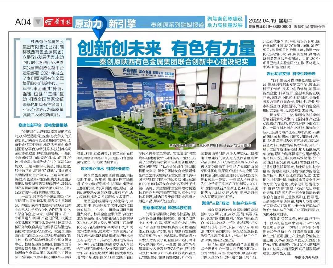 華商網(wǎng):創(chuàng)新創(chuàng)未來 有色有力量——秦創(chuàng)原陜西有色金屬集團聯(lián)合創(chuàng)新中心建設(shè)紀實