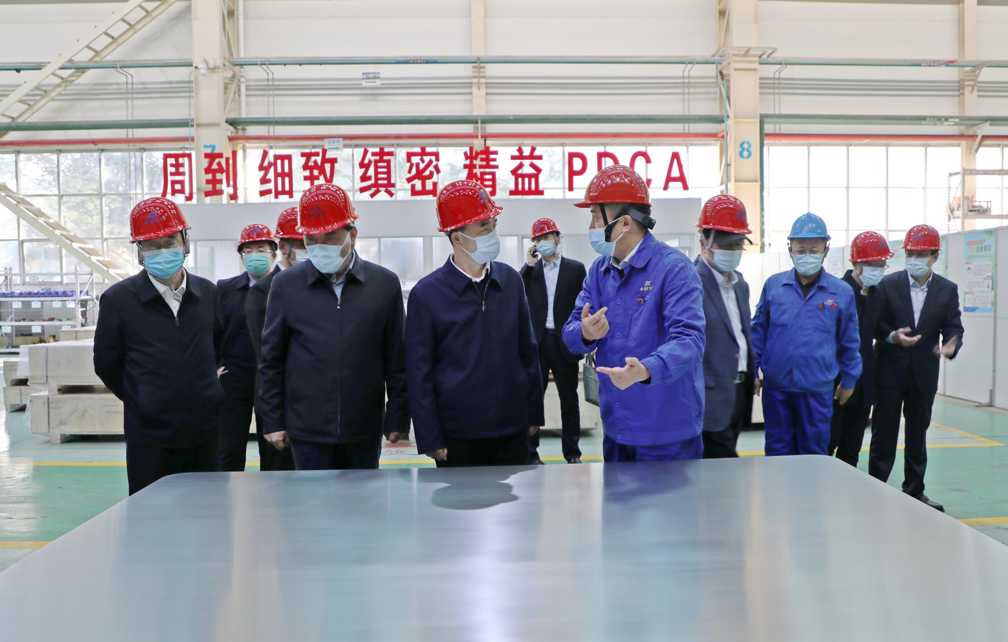 任國一行先后深入陜西有色金鉬集團(tuán)金鉬股份展廳,金屬分公司鉬粉車間、鉬制品車間、板材事業(yè)部,詳細(xì)了解鉬粉生產(chǎn)工藝、主要設(shè)備等情況,并詢問了鉬板坯等產(chǎn)品的主要用途,察看了鉬薄板、真空燒結(jié)爐鉬配件等產(chǎn)品展示。隨后,任國一行赴陜西有色金屬集團(tuán)總部,參觀了該集團(tuán)展廳,全面了解了陜西有色金屬集團(tuán)的發(fā)展歷程、科技創(chuàng)新、黨建引領(lǐng)、發(fā)展愿景以及社會責(zé)任履行等情況。