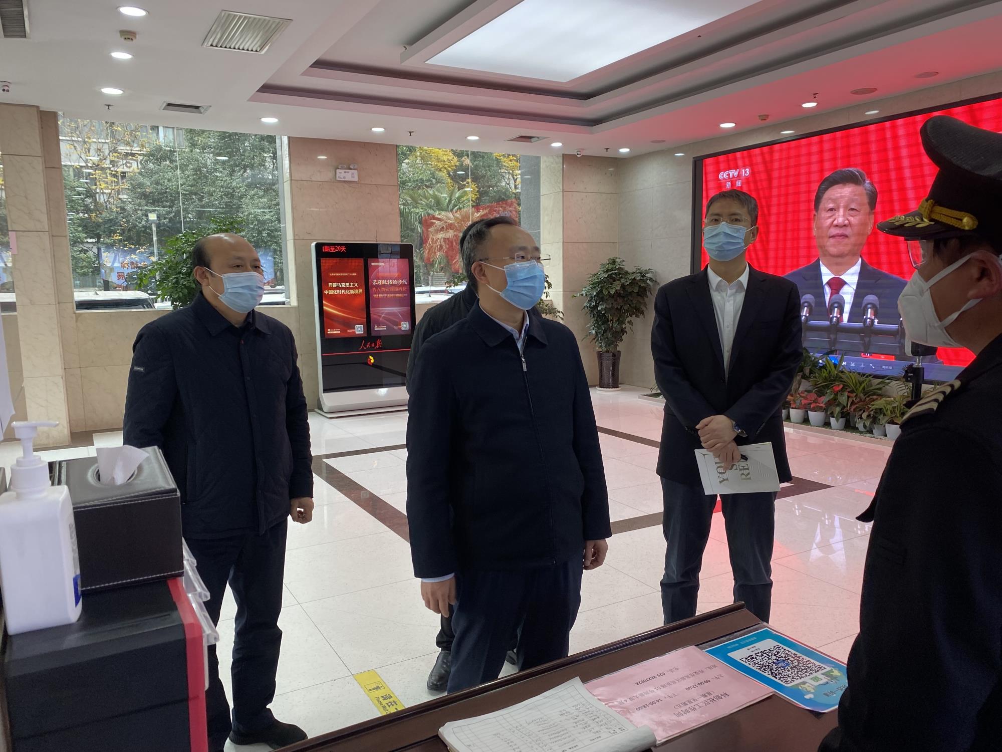 檢查組首先來到大廈一樓,詳細(xì)了解門禁管控措施落實(shí)情況。黃忠良指出,要完整準(zhǔn)確全面貫徹落實(shí)習(xí)近平總書記關(guān)于疫情防控工作重要講話重要指示精神和黨中央決策部署,認(rèn)真貫徹執(zhí)行省委省政府工作要求,堅(jiān)持第九版防控方案、落實(shí)二十條優(yōu)化措施。要進(jìn)一步夯實(shí)“四方”責(zé)任,不斷優(yōu)化防控措施,堅(jiān)決履行防控主體責(zé)任,認(rèn)真落實(shí)各項(xiàng)常態(tài)化疫情防控舉措,進(jìn)入大廈必須掃碼、測溫,核對健康碼、行程碼和核酸檢測陰性結(jié)果,仔細(xì)進(jìn)行出入登記,確保大樓安全、人員安全。