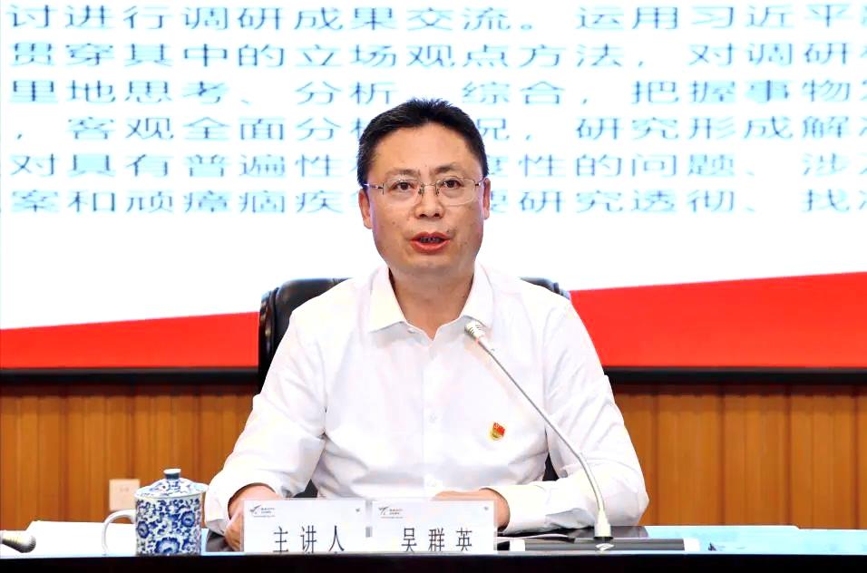 吳群英以《深入開展學習貫徹習近平新時代中國特色社會主義思想主題教育 推動高質量發(fā)展取得新的更大成效》為題,圍繞開展主題教育的重大意義、習近平新時代中國特色社會主義思想的核心要義、開展主題教育要大興調查研究、以高質量發(fā)展的成效檢驗主題教育成果等四個方面進行了深入淺出的講授。