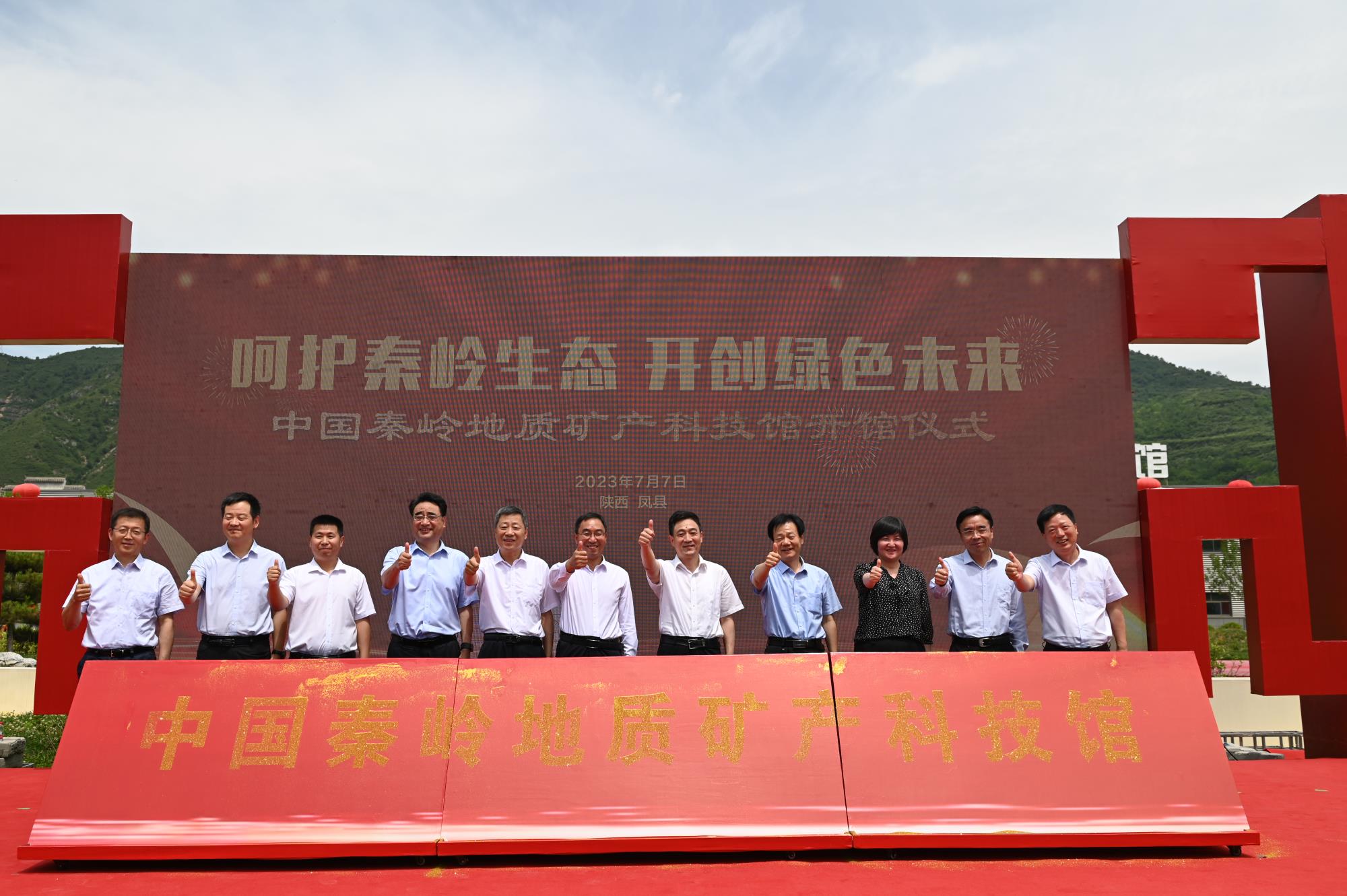 在熱烈的掌聲中,鄒武裝,王雁林,省工信廳二級巡視員孟尉校,省國資委二級巡視員白宏偉,秦西社,地礦集團(tuán)黨委副書記、總經(jīng)理高菊生,李小紅,鳳縣縣委書記張揚,中國地質(zhì)科學(xué)院副院長馬巖,省地調(diào)院副院長蒲明輝,西安地調(diào)中心黨委書記、副主任唐金榮等領(lǐng)導(dǎo)一起上臺,共同為科技館揭牌。
