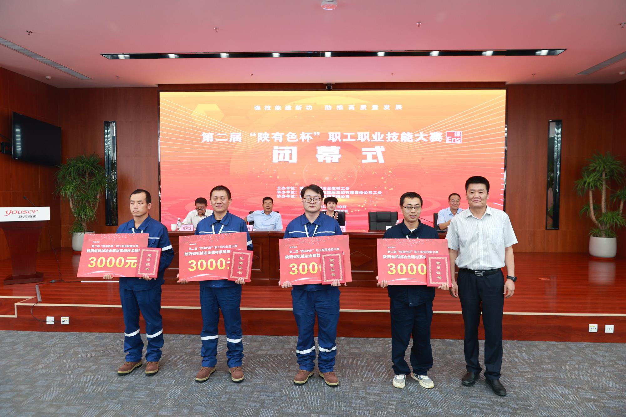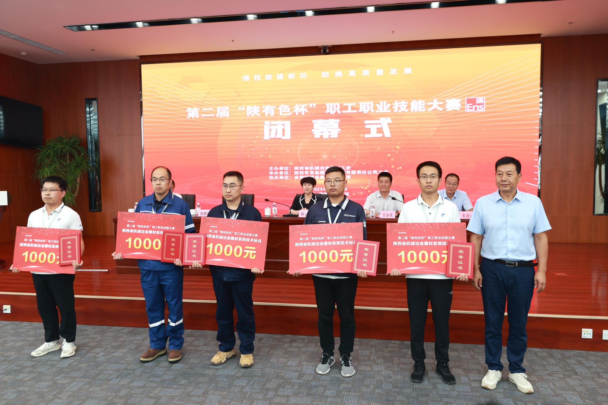 省機械冶金建材工會主席譚小榮,陜西有色金屬集團黨委副書記、董事、工會主席王小慶,工會常務(wù)副主席張繼祥,人力資源培訓(xùn)部經(jīng)理、大賽總裁判長王學(xué)慶,金鉬集團黨委副書記朱凌云出席閉幕式。省機械冶金建材工會二級調(diào)研員薛繼虎主持閉幕式,并宣布第二屆“陜有色杯”職工職業(yè)技能大賽閉幕!