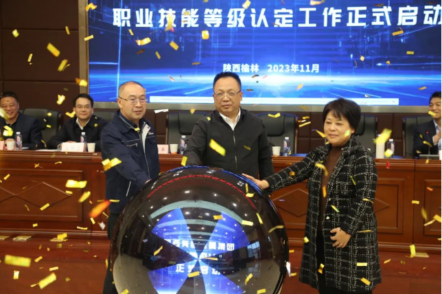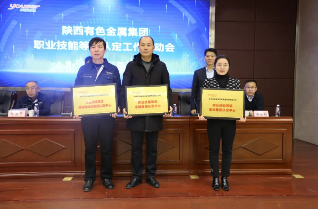 會(huì)上,楊國(guó)平致歡迎辭,溫驚濤介紹了首次職業(yè)技能等級(jí)認(rèn)定工作籌備情況,俞舸作了職業(yè)技能等級(jí)認(rèn)定相關(guān)政策解讀。俞舸、王天雄、王學(xué)慶分別向金鉬集團(tuán)、寶鈦集團(tuán)、榆林新材料集團(tuán)三個(gè)職業(yè)技能等級(jí)認(rèn)定中心授牌。王天雄作了總結(jié)講話并宣布集團(tuán)公司職業(yè)技能等級(jí)認(rèn)定工作啟動(dòng)。