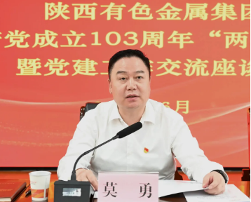 為慶祝中國共產(chǎn)黨成立103周年,弘揚(yáng)偉大建黨精神,6月28日,陜西有色金屬集團(tuán)召開慶祝中國共產(chǎn)黨成立103周年“兩優(yōu)一先”表彰會議暨黨建工作交流座談會。集團(tuán)公司黨委副書記、董事、總經(jīng)理莫勇出席會議并講話,黨委副書記、董事、工會主席王小慶,省紀(jì)委監(jiān)委駐陜西有色金屬集團(tuán)紀(jì)檢監(jiān)察組組長、黨委委員、紀(jì)委書記李金濤出席會議,黨委副書記郭仕龍主持會議。