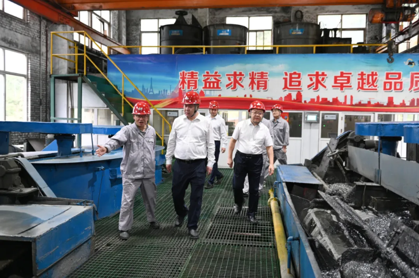調(diào)研期間,莫勇深入企業(yè)生產(chǎn)車間、調(diào)度指揮中心、職工活動室等處詳細了解生產(chǎn)經(jīng)營、工藝路線、安全環(huán)保、產(chǎn)品銷售、職工生活等方面情況,對四方金礦以科技創(chuàng)新引領(lǐng)礦山數(shù)字化智能化改造升級,鉛硐山礦業(yè)和鉛鋅集團鳳縣分公司加快礦山“四化”建設(shè)以及工藝轉(zhuǎn)型升級取得的成效給予肯定。在專題調(diào)研座談會上,莫勇聽取了陜西黃金集團、西北鉛鋅集團、四方金礦、鉛硐山礦業(yè)、銀母寺礦業(yè)負責(zé)人的工作匯報,肯定企業(yè)發(fā)展思路清晰、方向目標(biāo)明確、短板弱項認(rèn)識到位、下一步工作舉措客觀求實,就企業(yè)存在的亟待解決事項現(xiàn)場協(xié)調(diào),指明解決思路。陜西有色金屬集團相關(guān)部室負責(zé)人也結(jié)合職能職責(zé)作了工作交流,提出意見和建議。