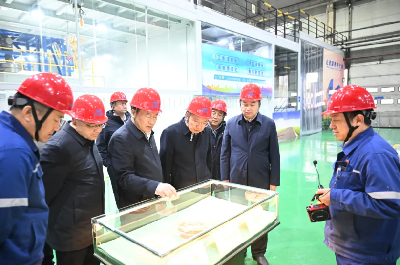 座談會(huì)前,孫繼洲一行參觀了金鉬集團(tuán)金鉬股份企業(yè)展廳,深入鉬金屬材料工業(yè)園鉬粉車(chē)間、鉬制品車(chē)間等了解鉬粉生產(chǎn)工藝、主要產(chǎn)品等情況。隨后,孫繼洲一行赴陜西有色金屬集團(tuán)總部,參觀了集團(tuán)展廳,全面了解了陜西有色金屬集團(tuán)的發(fā)展歷程、科技創(chuàng)新、黨建引領(lǐng)、發(fā)展愿景以及社會(huì)責(zé)任履行等情況。