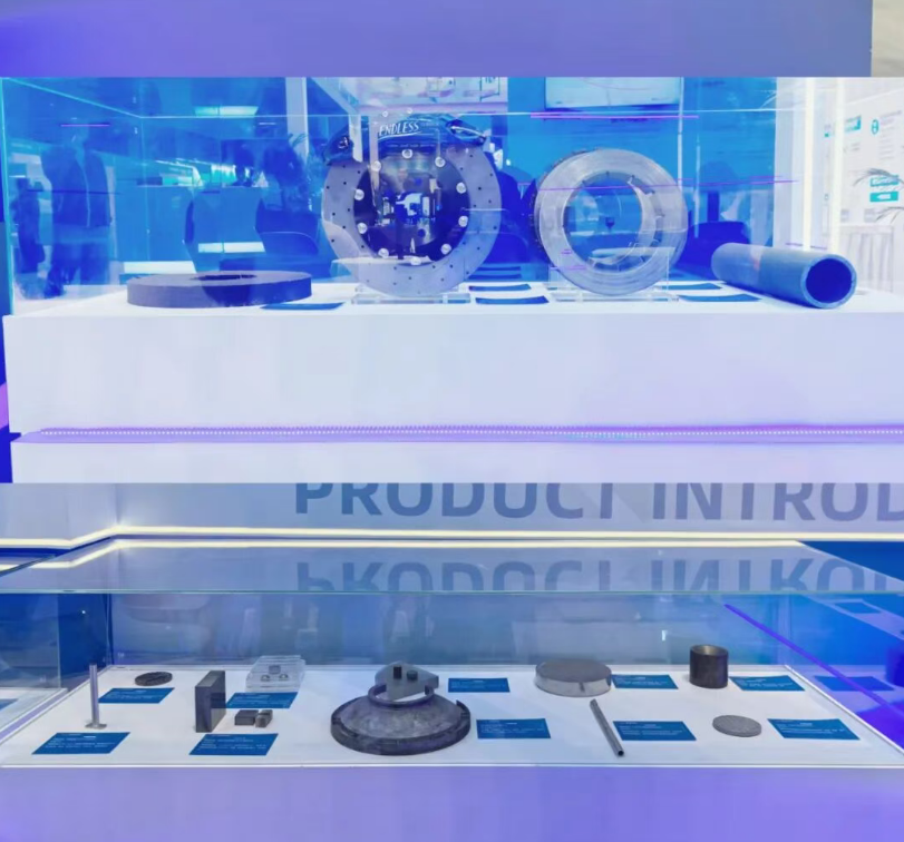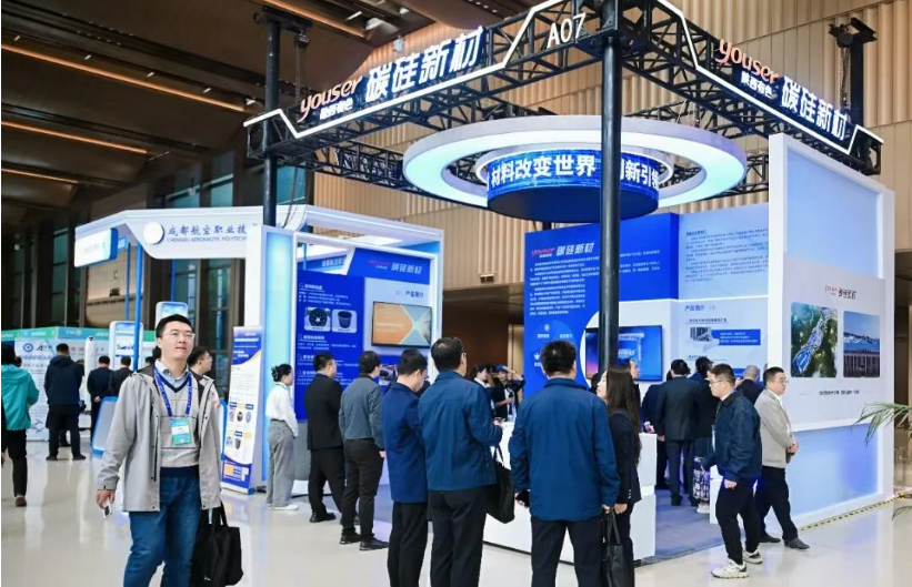 近年來,陜西有色金屬集團深化改革創(chuàng)新,以“著力科技自立自強,建設現(xiàn)代產(chǎn)業(yè)體系”為著力點,錨定“千百十一”高質(zhì)量發(fā)展階段性目標,轉(zhuǎn)型升級傳統(tǒng)產(chǎn)業(yè),培育發(fā)展戰(zhàn)新產(chǎn)業(yè),前瞻布局未來產(chǎn)業(yè)。本次參展,碳硅新材以“碳硅筑新,智領未來”為核心主題,深度融合企業(yè)技術基因與產(chǎn)業(yè)特性,展出中間相瀝青基碳纖維及其復材、高性能樹脂、金屬基復材、碳陶剎車盤、碳陶熱場、超韌氧化鋁粉體、高純碳化硅粉體等37件戰(zhàn)新類產(chǎn)品。通過視覺呈現(xiàn)、互動體驗等多維度協(xié)同,打造“沉浸式技術展示+精準化合作對接”的創(chuàng)新展出形式,受到復合材料行業(yè)專家一致好評,吸引了眾多行業(yè)從業(yè)者參觀駐足,有效提升了陜西有色品牌識別度。參展產(chǎn)品體現(xiàn)了碳硅新材與國內(nèi)知名高校院士專家團隊的深度合作,不僅性能優(yōu)勢顯著,更具備成熟的產(chǎn)業(yè)化落地能力,充分彰顯“技術引領、產(chǎn)研融合”的發(fā)展特色。
