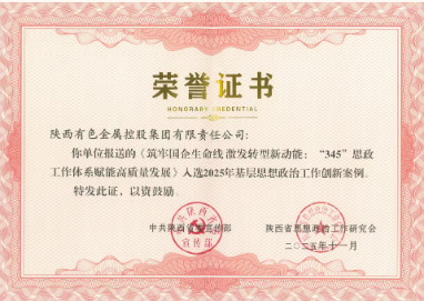 會議現(xiàn)場表彰了7家入選中國政研會“十佳”案例、創(chuàng)新案例、優(yōu)秀研究成果的單位和6家入選我省基層思想政治工作創(chuàng)新案例的單位。陜西有色金屬集團《筑牢國企生命線 激發(fā)轉型新動能:“345”思政工作體系賦能高質量發(fā)展》案例入選陜西省2025年基層思想政治工作創(chuàng)新案例,是現(xiàn)場接受表彰的2家省屬國有企業(yè)之一。
