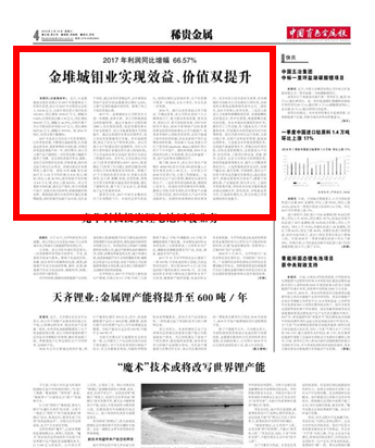 近日,從金堆城鉬業(yè)股份有限公司2017年度董事會(huì)工作報(bào)告獲悉,該公司2017年實(shí)現(xiàn)營業(yè)總收入102.06億元,完成年度經(jīng)營計(jì)劃目標(biāo)的 102.06%,同比增加4105.67萬元,增幅為 0.40%;實(shí)現(xiàn)利潤總額1.34億元,同比增加 5369.87萬元,增幅為66.57%;實(shí)現(xiàn)歸屬于母公司股東的凈利潤1.07億元,同比增加5337.60萬元,增幅為99.03%。較2016年相比,經(jīng)營業(yè)績大幅增加。