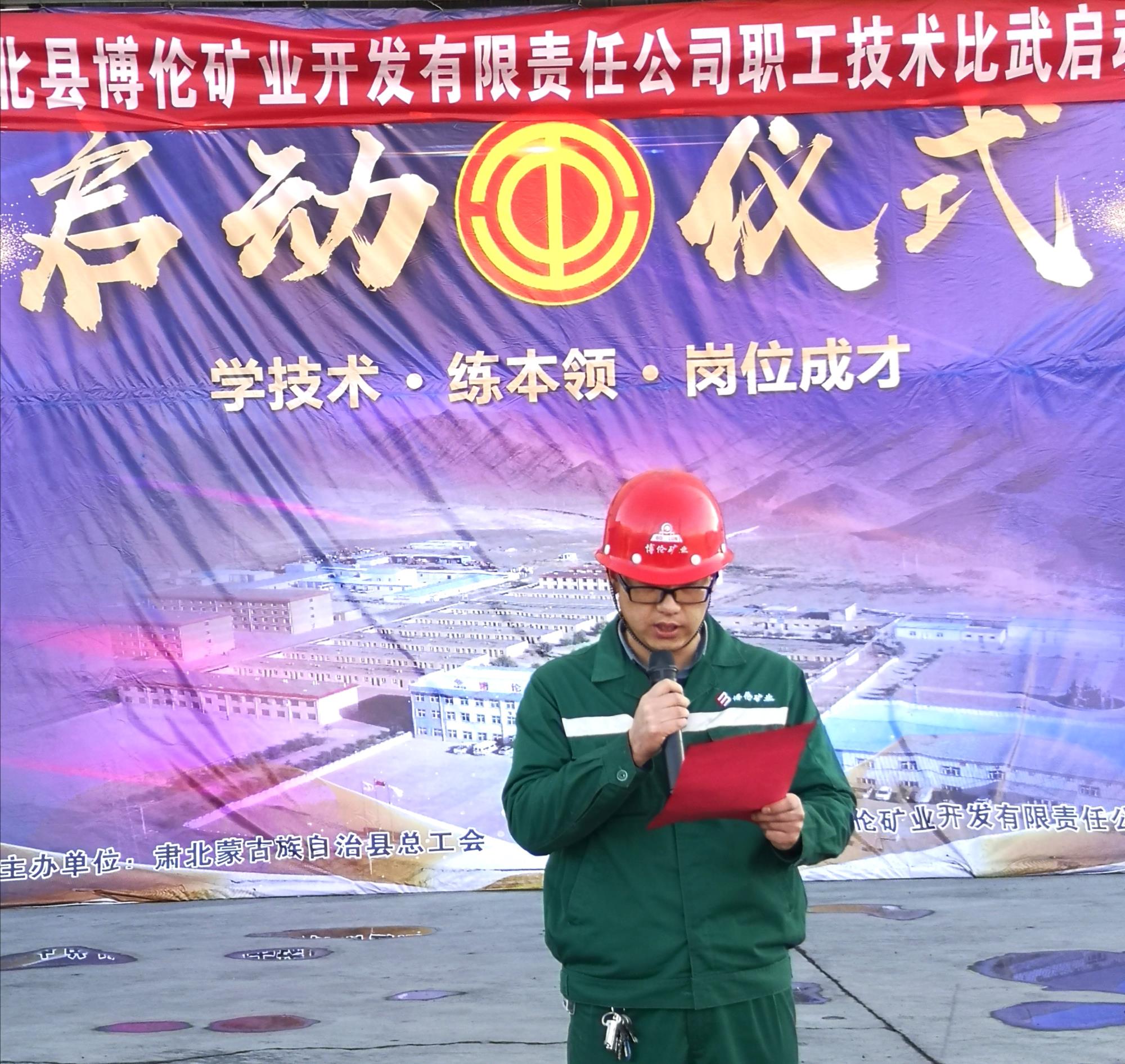 8月23日上午9時,伴隨著熱烈的掌聲,在陜西銀礦肅北銀鑫公司磨選車間西門口拉開了“學(xué)技術(shù)、練本領(lǐng)、崗位成才”技術(shù)比武序幕。在啟動儀式上,陜西銀礦肅北銀鑫副經(jīng)理趙鵬云、井下電工工班班長李思德分別代表參賽單位和參賽選手發(fā)言,肅北縣總工會主席董元續(xù)為大賽開賽致詞,博倫公司黨委委員、副總經(jīng)理、工會主席孫利宣布技術(shù)比武活動正式啟動。