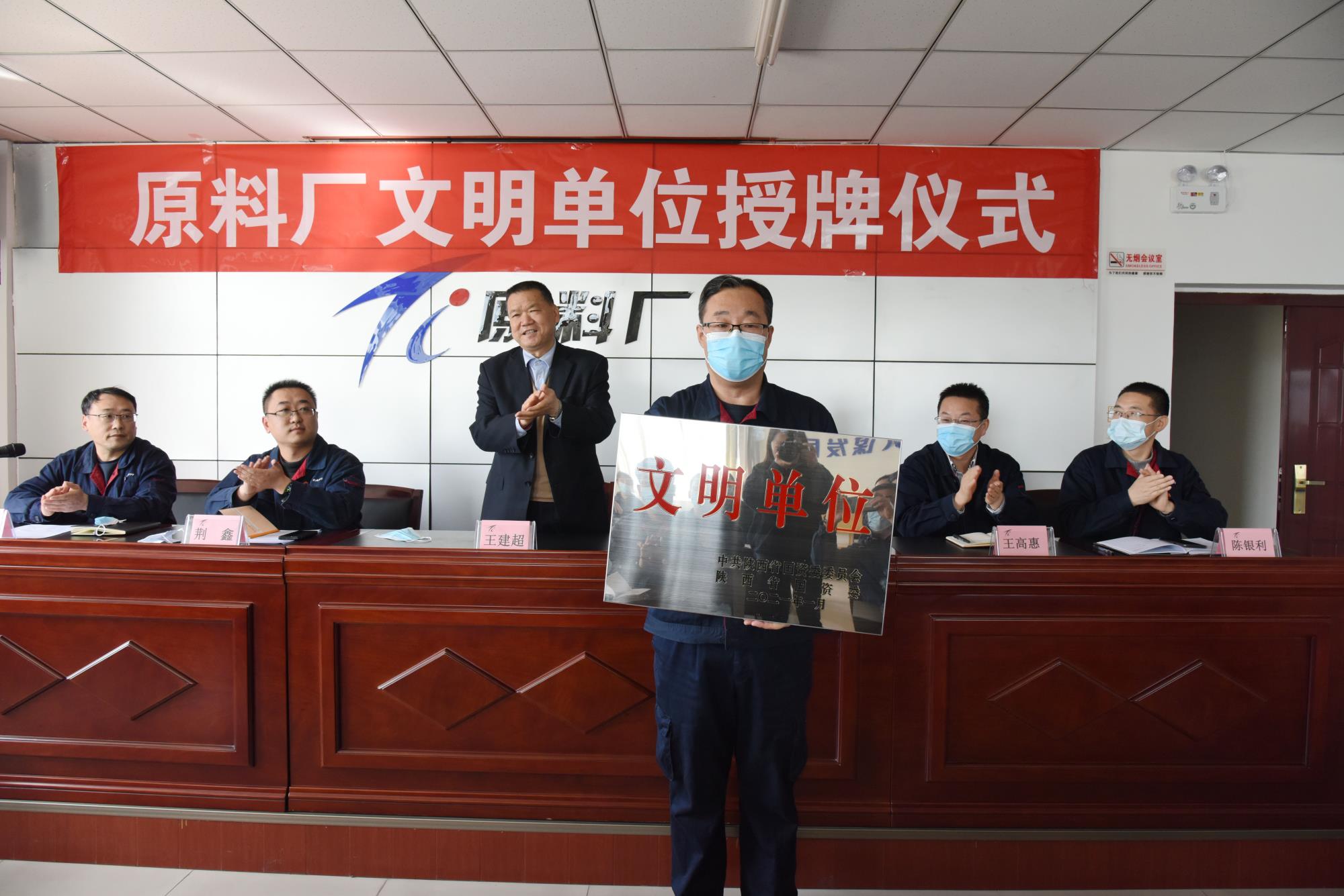 3月23日下午,在寶鈦集團(tuán)原料廠文明單位授牌儀式上,公司黨委副書記、工會(huì)主席王建超為原料廠頒發(fā)了榮譽(yù)獎(jiǎng)牌。公司黨委宣傳部部長(zhǎng)荊鑫宣讀了省國(guó)資委表彰決定。