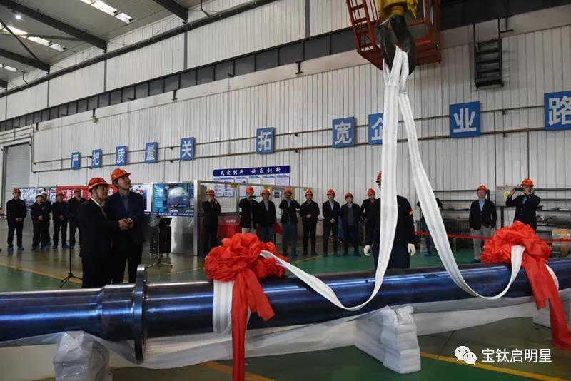 3月23日上午,由寶鈦股份承制的重達12噸,長達12余米的大型PTA核心部件——鈦合金攪拌軸交付典禮在裝備制造公司現(xiàn)場順利舉行。這標志著公司具備了向大型PTA提供核心部件的能力,必將成為公司新的利潤增長點。
