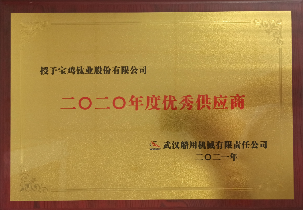 近日,在武漢船用機(jī)械有限責(zé)任公司首次召開的供應(yīng)商大會(huì)上,寶鈦集團(tuán)寶鈦股份榮獲其2020年度十大“優(yōu)秀供應(yīng)商”稱號(hào)。寶鈦股份副總經(jīng)理何書林出席會(huì)議并領(lǐng)獎(jiǎng)。