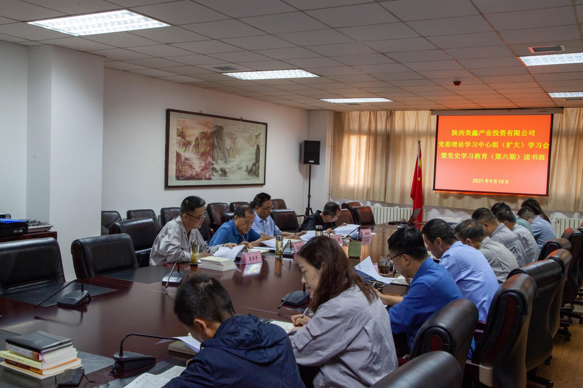 9月10日上午,陜西美鑫公司在機關四樓會議室召開黨委理論中心組(擴大)學習會暨黨史學習教育(第六期)讀書班。公司黨委中心組成員參加會議,公司機關有關部門負責人列席會議。會議由公司黨委書記、董事長高曉兵主持。