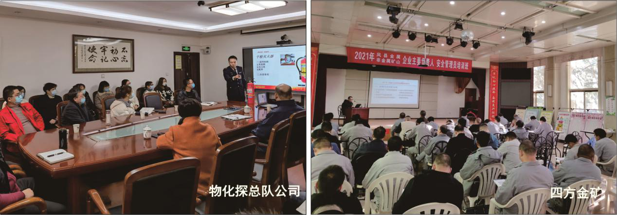 專題培訓“請進來”。物化探總隊公司、712總隊公司、四方金礦等單位開展了“消防安全進企業(yè)”活動,邀請專業(yè)消防教官及安全工程博士授課,針對消防法律法規(guī)相關規(guī)定、火災自救知識、消防器材使用方法等方面,為職工進行全面系統(tǒng)的消防安全培訓,同時,對礦山企業(yè)應急管理能力建設、礦山企業(yè)現(xiàn)代安全管理和隱患排查與風險控制等內(nèi)容進行重點講授。專題培訓活動切實增強了廣大職工居安思危、“防患于未然”的安全意識,為創(chuàng)造安全穩(wěn)定的企業(yè)環(huán)境奠定思想基礎。