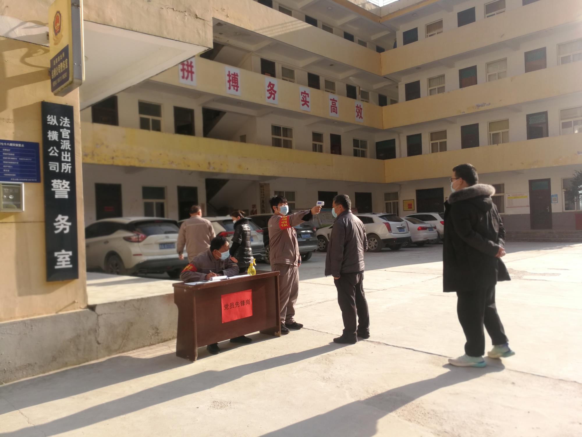 “同志,請(qǐng)稍等,配合掃碼測(cè)溫!”循聲望去,一輛白色越野車正準(zhǔn)備駛?cè)牍敬箝T,兩位戴紅袖章的中年男子邊喊邊拿著健康碼迎上了上去。車內(nèi)司乘人員逐一掃碼、測(cè)溫、登記后,互道感謝,車輛放行……這是在713總隊(duì)公司商州本部大院防疫卡點(diǎn)常見的一幕。