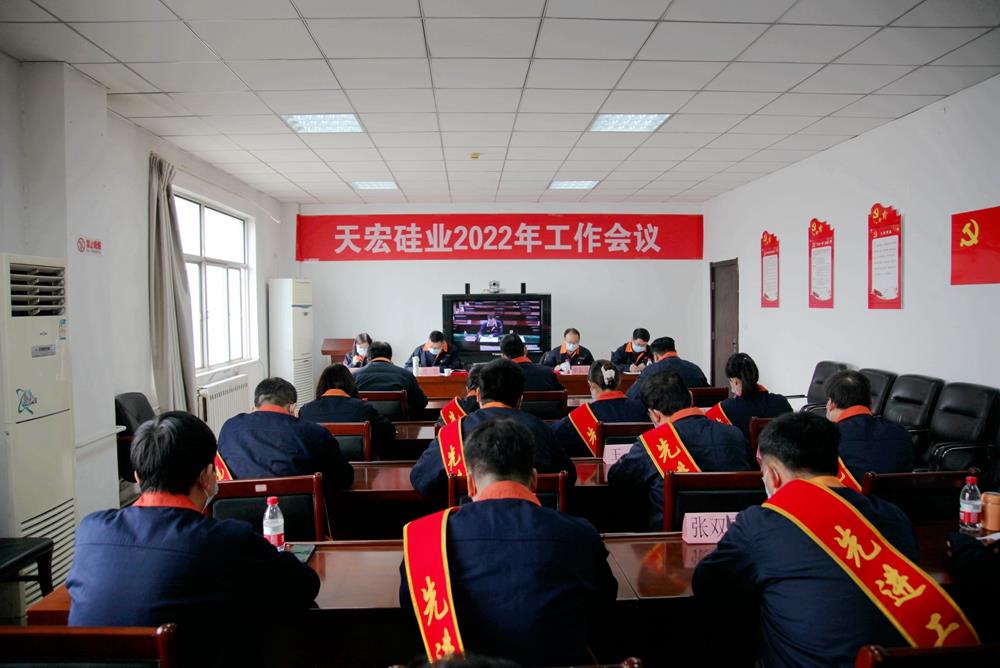 3月22日,天宏硅業(yè)召開2022年工作會議。公司黨委副書記、總經理蘇旭盛作了題為《砥礪前行求生存銳意進取謀發(fā)展 為打破僵局轉型發(fā)展承壓奮進》的工作報告。公司領導班子成員、副總工程師、中層干部、各車間部室負責人以及公司2021年度先進工作者參加會議。