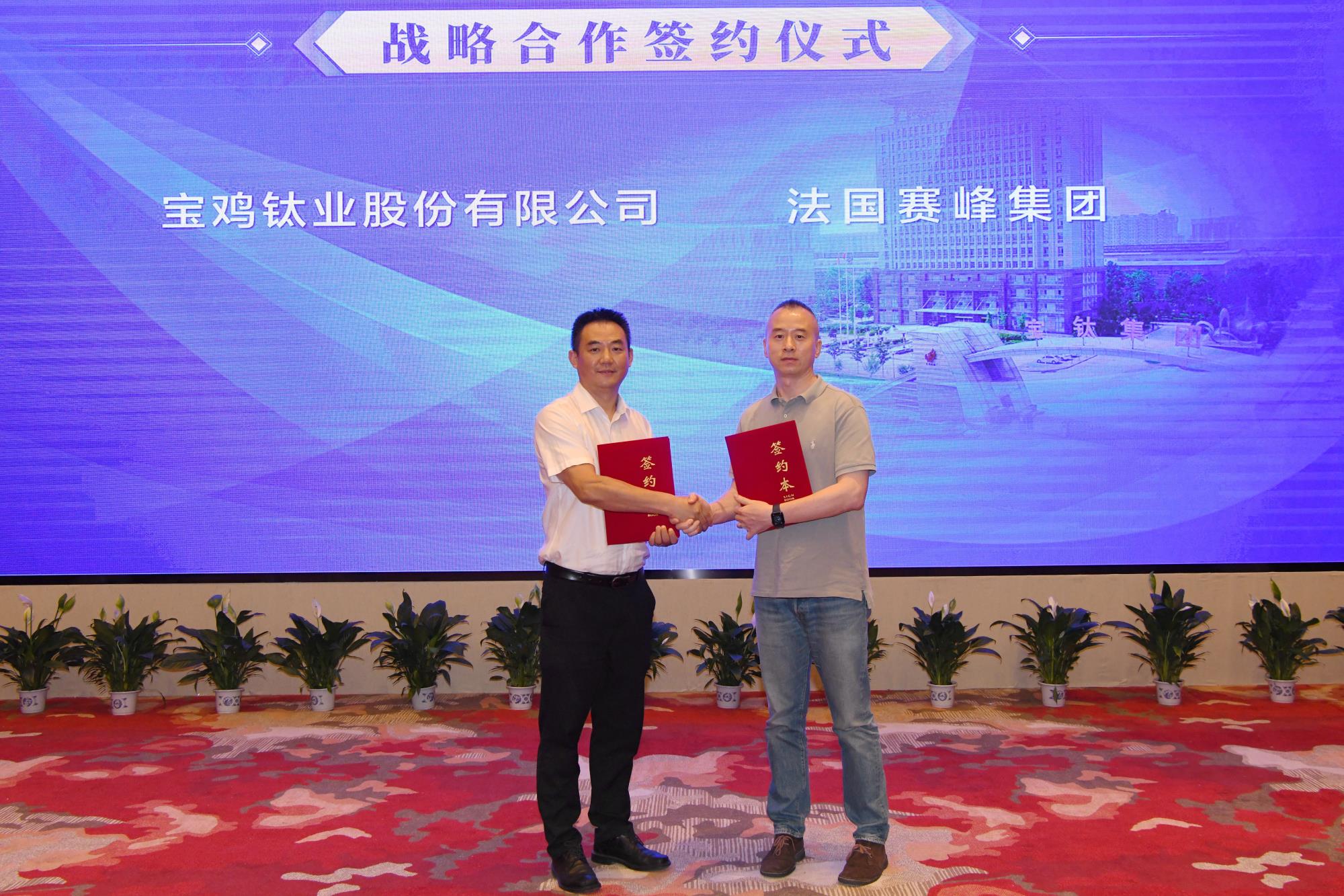 會(huì)上,與會(huì)人員集體觀看了寶鈦股份上市20周年宣傳片。中國(guó)航發(fā)動(dòng)力股份有限公司副總經(jīng)理沈鵬與寶鈦股份副總經(jīng)理何書(shū)林,國(guó)家電投集團(tuán)氫能科技發(fā)展有限公司寧波綠動(dòng)燃料電池有限公司總經(jīng)理李鵬飛與寶鈦股份副總經(jīng)理容耀分別上臺(tái),簽訂了戰(zhàn)略合作協(xié)議。由于疫情原因,法國(guó)賽峰集團(tuán)總部提前與寶鈦股份進(jìn)行了視頻簽約,并安排賽峰集團(tuán)亞洲區(qū)供應(yīng)鏈經(jīng)理周壽波與寶鈦股份外貿(mào)部主任張杰現(xiàn)場(chǎng)交換了簽訂的協(xié)議。