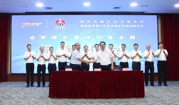 美鑫礦業(yè)公司總經(jīng)理席聯(lián)校,銅川礦業(yè)公司副總工程師、煤礦管理公司黨委書記、總經(jīng)理李福錦,代表雙方簽署冶坪煤礦整體托管合同。
